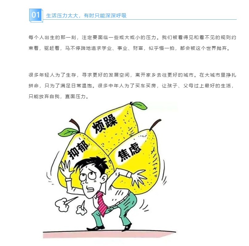 生活的壓力,需要一個(gè)宣泄口:或是深夜點(diǎn)上一支煙;或是球場揮汗如雨;或許關(guān)上門默默流淚……更多的時(shí)候,是低下頭,深呼吸,告訴自己你能行,請堅(jiān)持。