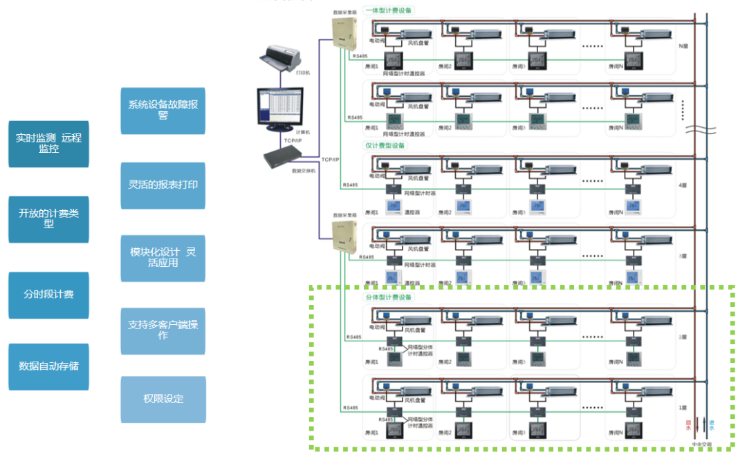 公攤監(jiān)控計費單價=(用電費用+用水費用+管理費+設備折舊基金+設備維修基金+附加費)/(全部風盤末端用量累計和)核定單價:我們將協(xié)助管理員根據現場設備、環(huán)境以及用戶使用情況,通過與用戶協(xié)商并實地核定。