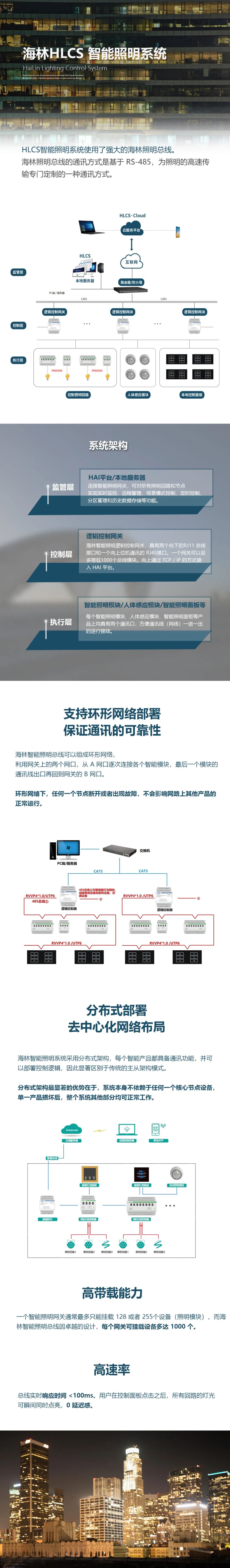 海林智能照明系統(tǒng)因高速率、帶載能力高、穩(wěn)定性強(qiáng)的特點(diǎn),得到了大多數(shù)在酒店、辦公及住宅項(xiàng)目中的應(yīng)用。尤其是當(dāng)項(xiàng)目的照明系統(tǒng)非常龐大時(shí),對照明控制器的監(jiān)控管理非常繁瑣的情況,海林總線控制、分區(qū)部署的智能照明系統(tǒng)的優(yōu)勢更加明顯。