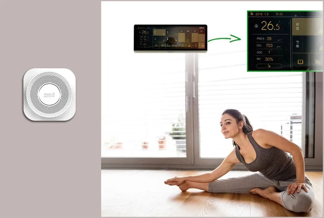 Ate Pro與Ace智能控制面板連接,Ate Pro實(shí)時(shí)監(jiān)測(cè)環(huán)境參數(shù),Ace智能控制面板根據(jù)數(shù)據(jù)精準(zhǔn)調(diào)控新風(fēng)凈化設(shè)備運(yùn)行,保證室內(nèi)環(huán)境健康。同時(shí)系統(tǒng)將采集到的環(huán)境數(shù)據(jù)及設(shè)備運(yùn)行狀態(tài)實(shí)時(shí)顯示在智能面板上,使用戶(hù)對(duì)當(dāng)前室內(nèi)環(huán)境健康一目了然。
