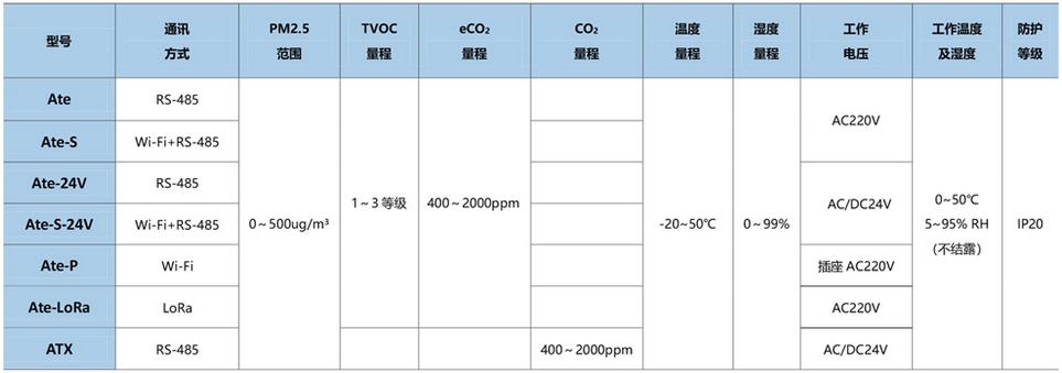 Ate 是一款五合一的空氣質(zhì)量傳感器,用于室內(nèi)多種空氣參數(shù)的測量,包括溫度、濕度、PM2.5、CO?/eCO? 和 TVOC。配備 Wi-Fi、RS-485、LoRa 或 ZigBee 等多種通訊方式, 適用于各種樓宇自控系統(tǒng)。