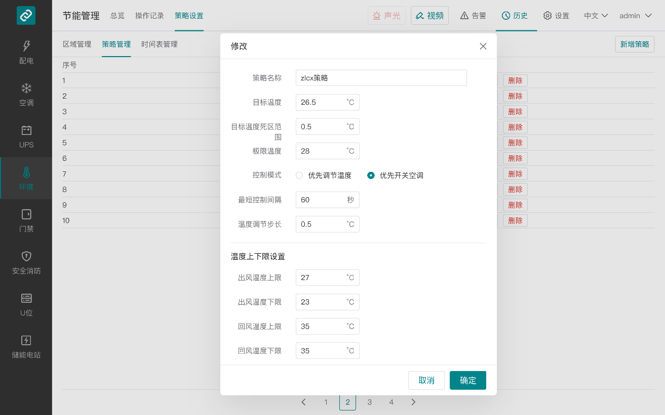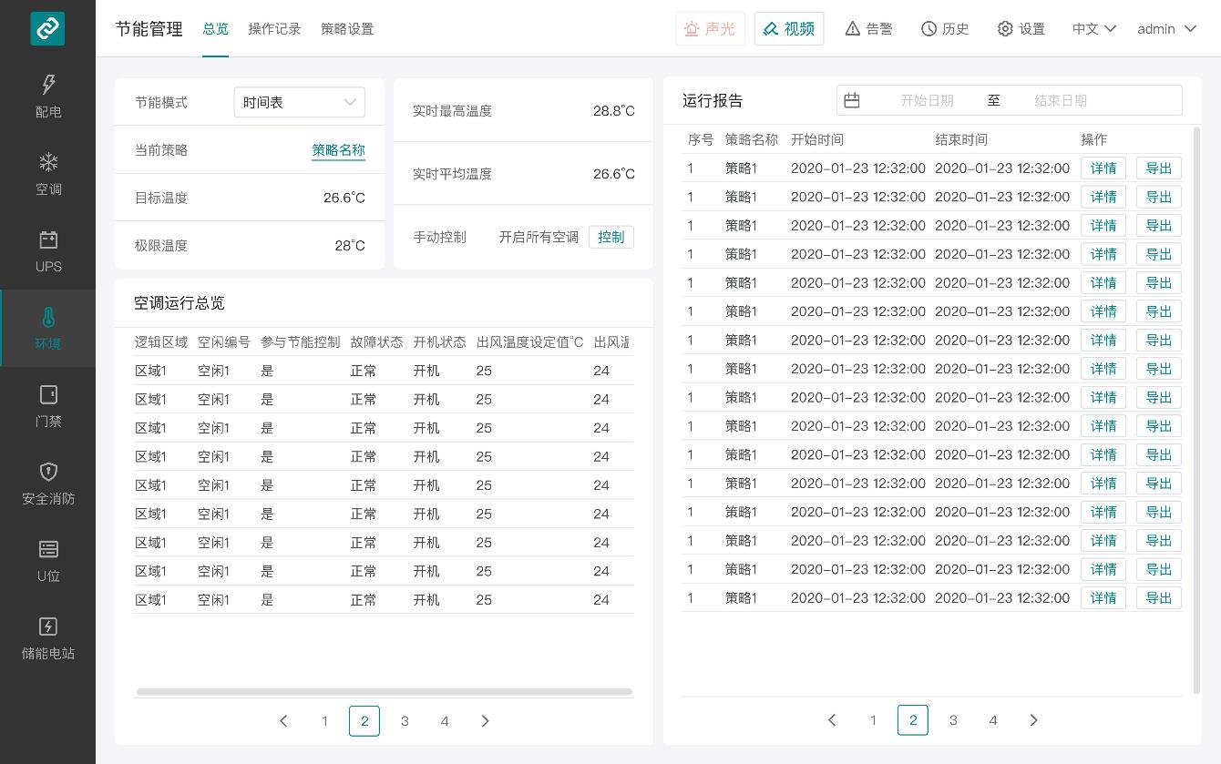 (1)空調(diào)用電的優(yōu)化,在滿足機房熱負荷需求、環(huán)境溫度要求的前提下,通過自動調(diào)節(jié)空調(diào)出回風溫度設定、運行數(shù)量來實現(xiàn)空調(diào)用電的最優(yōu)化。