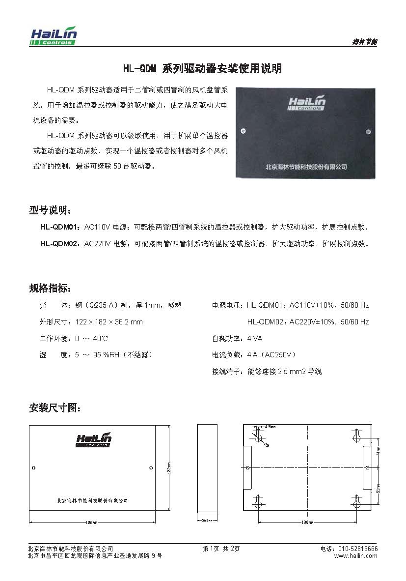 HL-QDM系列驅(qū)動器適用于二管制或四管制的風機盤管系統(tǒng)。用于增加溫控器或控制器的驅(qū)動能力,使用之滿足驅(qū)動大電流設備的需要。