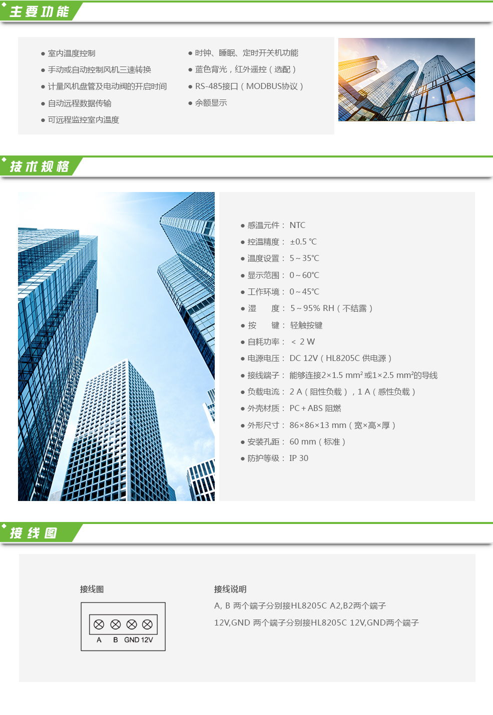 網(wǎng)絡(luò)型計(jì)時(shí)溫控器HL8205S適用于寫字樓、商業(yè)地產(chǎn)及家庭居室的溫度控制及對空調(diào)使用的計(jì)量計(jì)費(fèi)。其具備普通溫控器調(diào)節(jié)室內(nèi)溫度的功能,同時(shí)具有對風(fēng)機(jī)盤管的三速運(yùn)行時(shí)間、電動閥的開關(guān)時(shí)間進(jìn)行計(jì)量,并自動遠(yuǎn)程傳輸數(shù)據(jù),也可通過集中控制遠(yuǎn)程監(jiān)控。