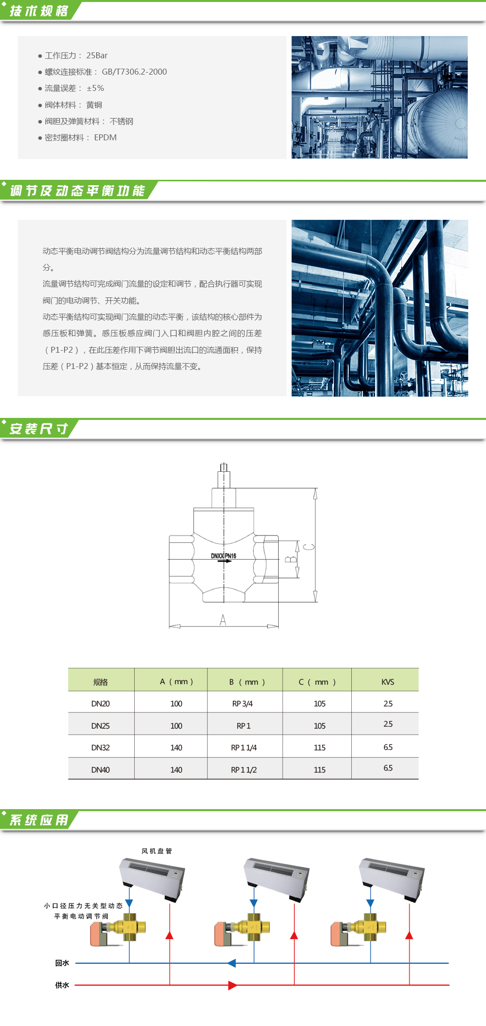 本系列產(chǎn)品集動態(tài)平衡與調(diào)節(jié)功能于一體,根據(jù)流量需求調(diào)整好閥門開度,無論系統(tǒng)壓差如何波動,只要在閥門的工作范圍內(nèi),閥芯即可自動調(diào)整可變流道開度,保持流量恒定不變。該閥門采用新穎獨特的剛性結(jié)構(gòu),徹底克服老舊膜片式閥門的壽命短、調(diào)節(jié)范圍小等缺點。精確校準(zhǔn)的閥芯可確保恒定在±5%的偏差范圍內(nèi)。通過動態(tài)平衡功能動態(tài)平衡系統(tǒng)的阻力,保證設(shè)備輸送介質(zhì)流量在一定壓差 ...