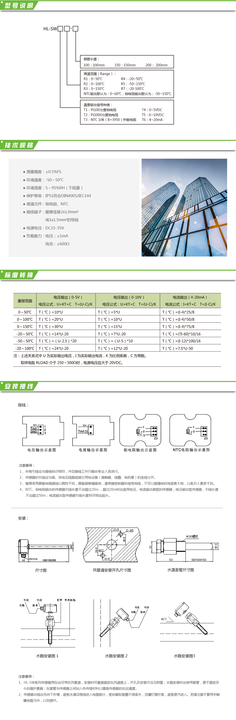 水管道溫度傳感器HL-SW